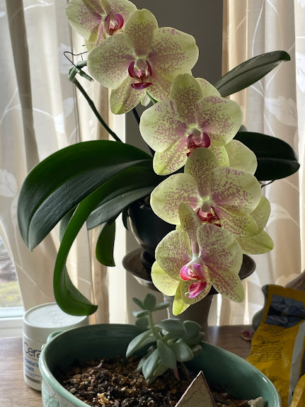 2. I love your orchid blooms. I do not think my orchid will bloom again. The weather here is either very cold and almost spring like. Take care, have a happy day!