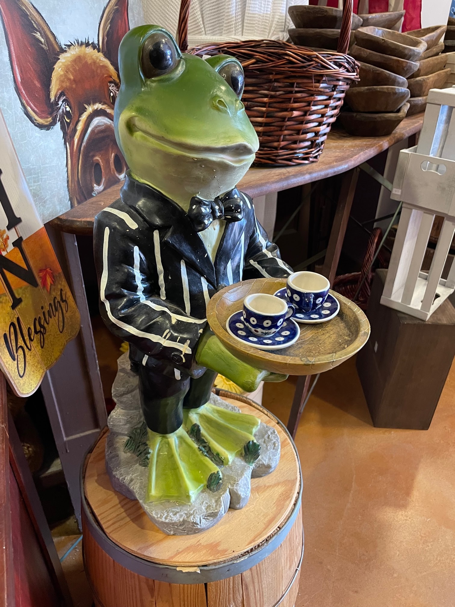 So glad to hear from you Eileen. I guess the frog didn't count, being plaster and all. But there's also a tiny dog on a leash in the very first sculpture of three people in metal. Happy weekend.